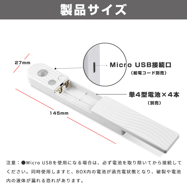 | 商品名 | 電池/USB給電人感センサースイッチ(den-qn101) |