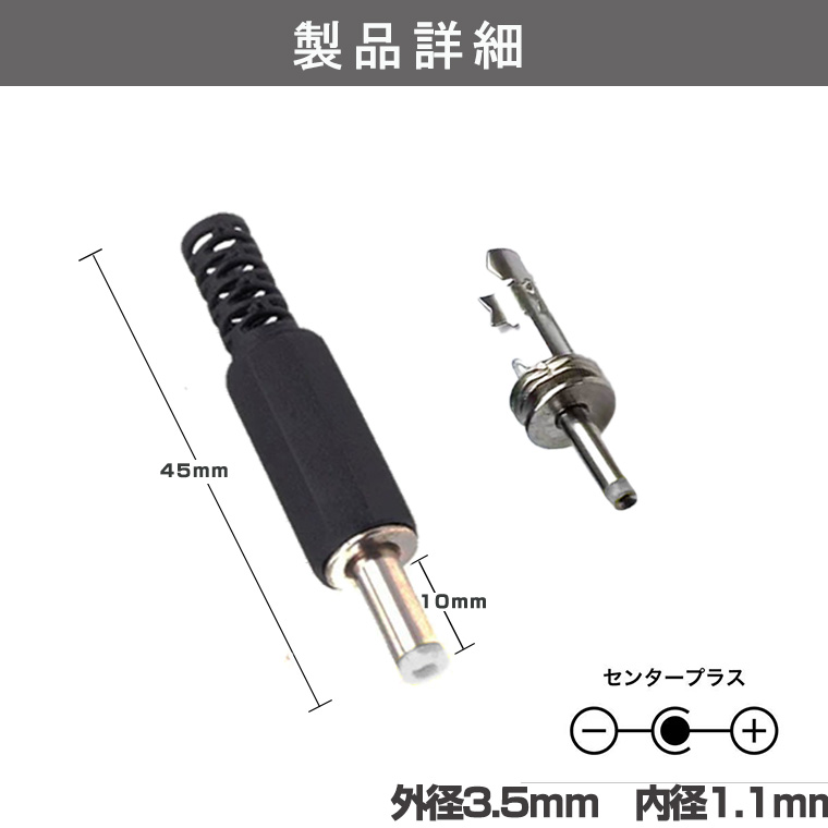DCプラグ3.5×1.1 mm 変換コネクター 半田付けタイプ ハンダ付け 変換 DCジャックコネクター アダプター メス 3.5/1.1mm 配線 延長 基盤取付 DIY 工作