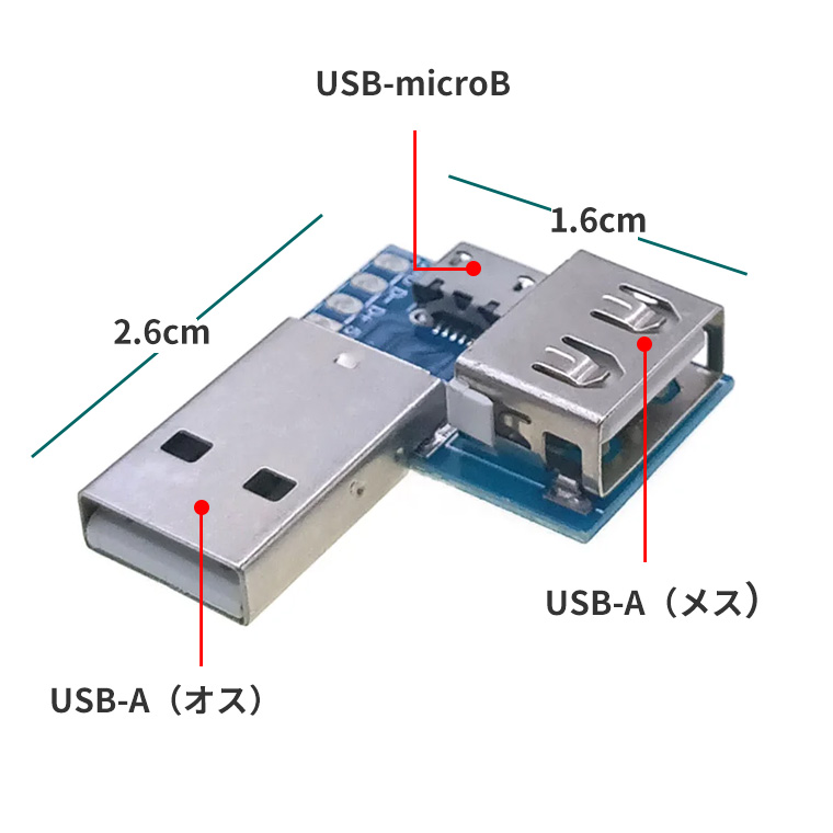 | 対応端子 | USB-A(メス)/USB-A(オス)/Micro B/ ピッチ:2.54mm/4Pin |