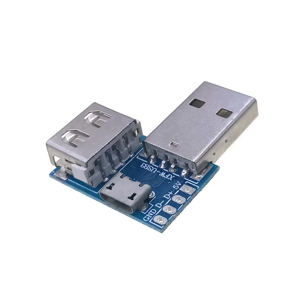 USB アダプタボード 互換2.54-3P USB変換基板 USB-A⇔USB-A(メス)/ microB対応 3ポート接続 DIY電子工作用 変換基板 電源モジュール 電源変換器