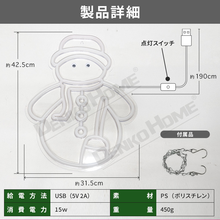 | 品名 | LED ネオンライト スノーマン USB式(neonl-ce) |