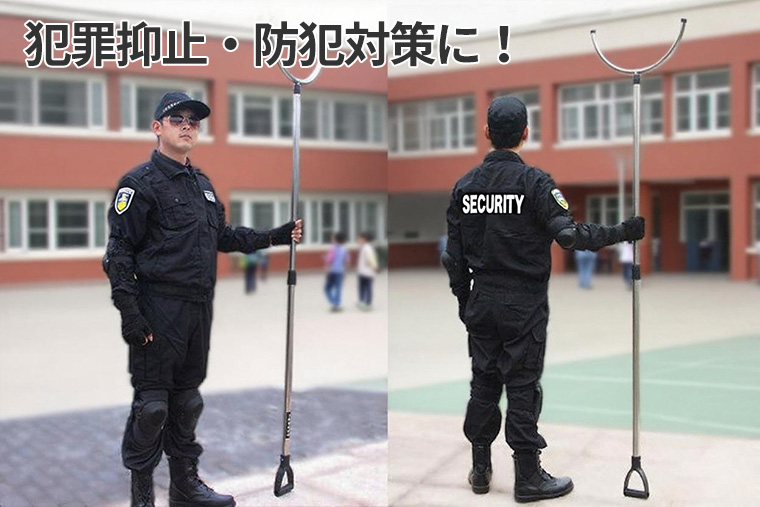 頭部は広めのU字形状で、対象を押さえたり距離を取るのに適しています。学校・店舗・病院・オフィス・警備現場など、あらゆる施設での安全対策にご活用いただけます。