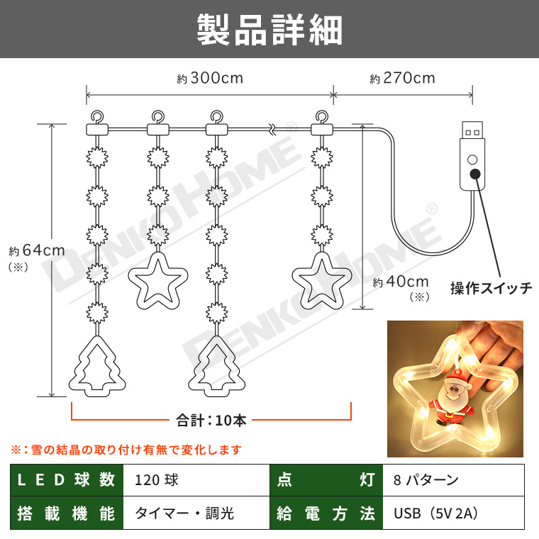 | 品名 | LED カーテンライト 星とツリー(licn-usb03) |