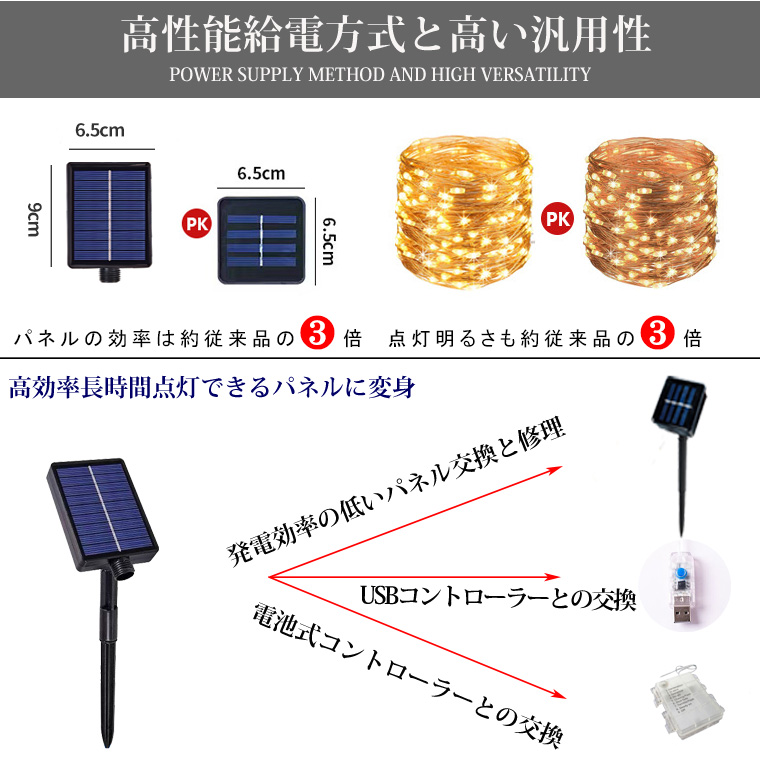 汎用型 、市販ソーラーパネル式,USB式、電池式電飾に多数適用。