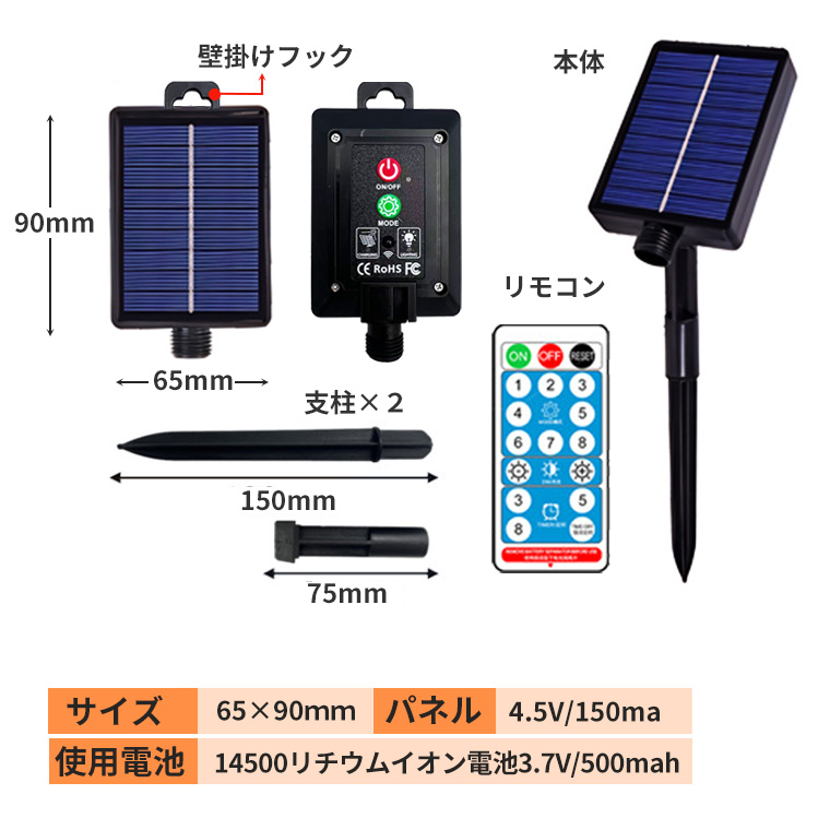| 商品内容 | ソーラーパネル本体、支柱 ×2、リモコン |