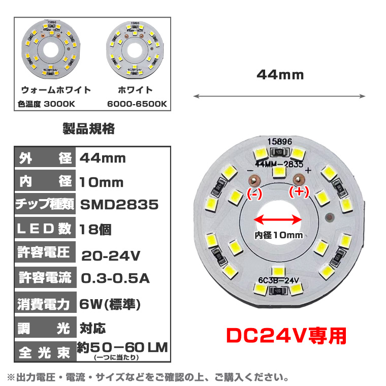 LEDモジュール LEDチップ LEDユニット DC24V 専用 18灯 6W SMD2835 丸型 44mm ホワイト/暖色 2色選択 調光対応 LEDランプ 照明 修理 交換用 DIY