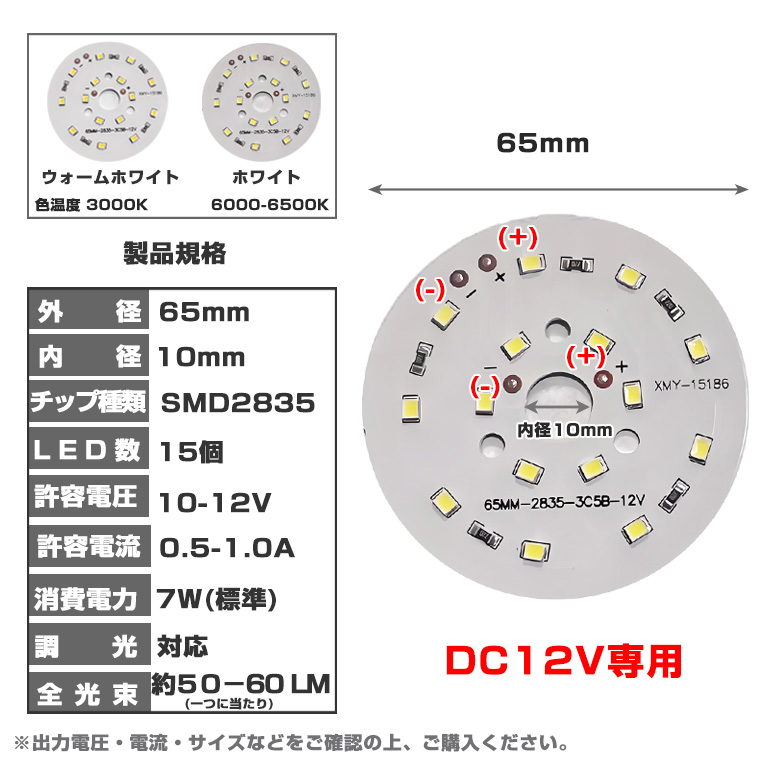 LED モジュール LEDチップ LEDユニット DC12V専用 LED15灯 7W 65mm大型タイプ(ホワイト/電球色) 2色選択 調光対応 LEDランプ 照明 修理 交換用 DIY