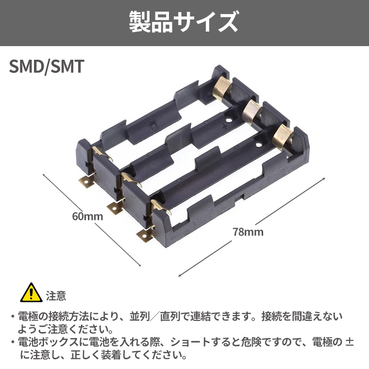 18650 電池ケース 電池ボックス 3本用 SMD/SMT 並列・直列兼用 大電流15A対応 3スロット 電池ホルダー バッテリーホルダー 18650 リチウムイオン電池 DIY