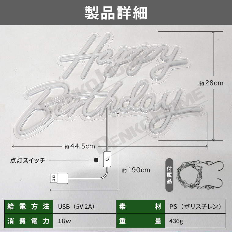 | 品名 | LED ネオンライト ハッピーバースデイ USB式(neonl-ck) |