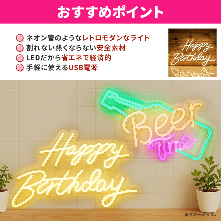LED ネオンサイン ハッピーバースデイ USB電源 室内用 かわいい おしゃれ レトロ ネオンライト ネオン管 チューブ インテリアライト アメリカ雑貨 間接照明 飾り付け 壁掛け 電光ホーム