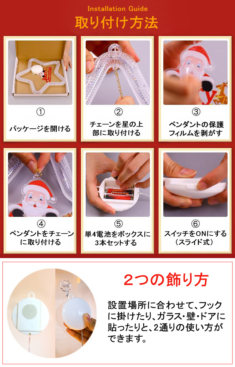 電源不要で、窓や壁などに簡単に飾れます