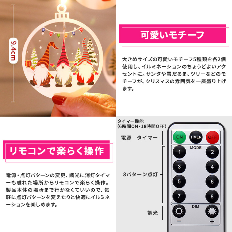 - クリスマスモチーフのアクリルオーナメント付きLEDイルミネーション
