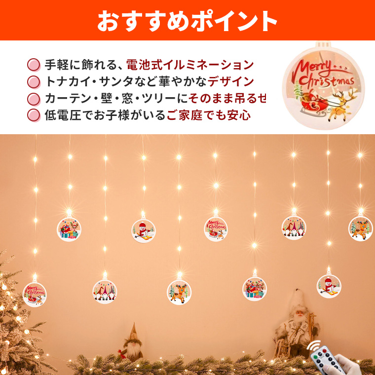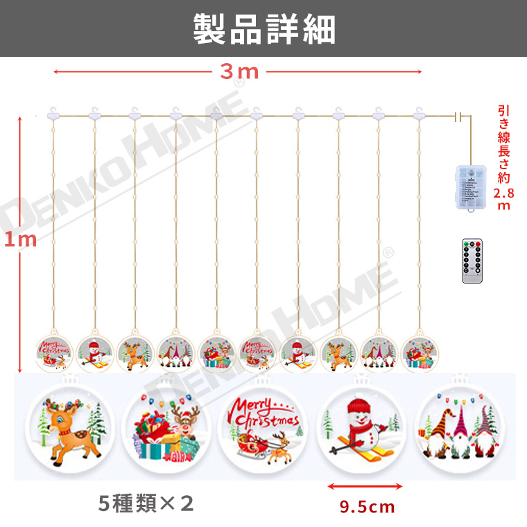 電光ホーム 電池式 クリスマス オーナメント カーテンライト イルミネーションライト 3m 電飾 クリスマスデコレーション 飾り付け クリスマスライト クリスマス飾り タイマー 調光対応 室内装飾 電光ホーム