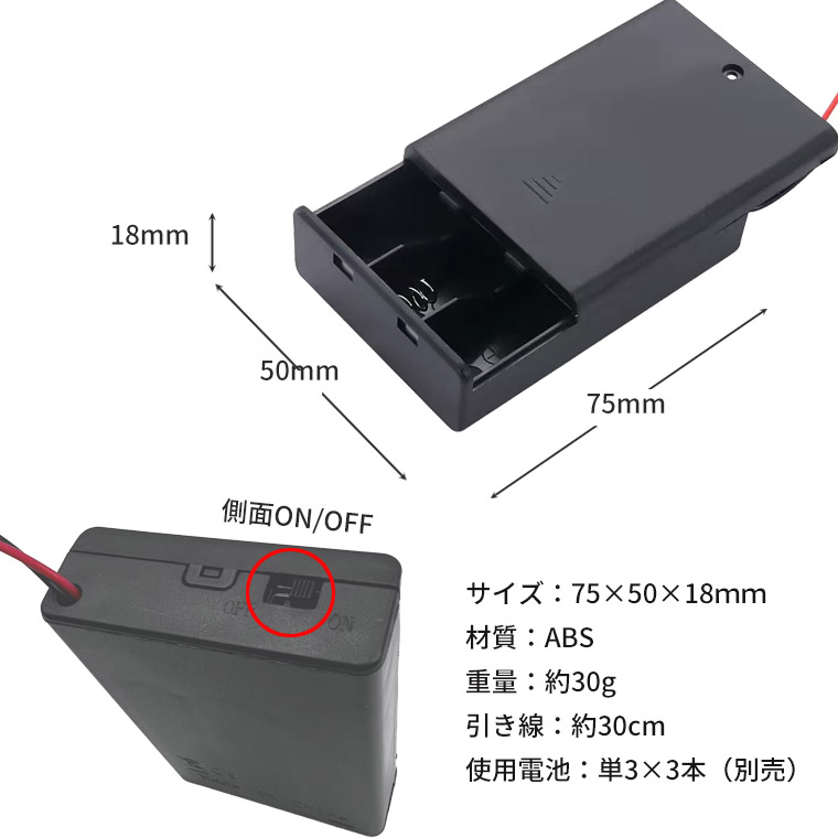 単3形電池ボックス 4.5V出力 直列 スイッチ 引き線付 単3×3個 電池ケース バッテリー ケース 電池 ホルダー アダプター