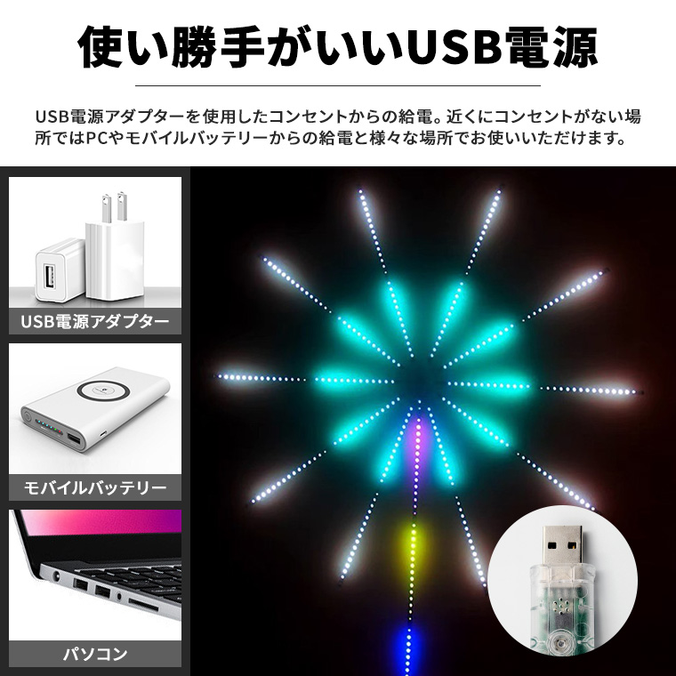 LEDテープ ライト 花火 アプリ操作 RGB USB電源 調光 調色 タイマー 音楽 同期 おしゃれ ゲーミング リズム 流れる イルミネーション 電飾 DIY 間接照明 店舗 演出 電光ホーム
