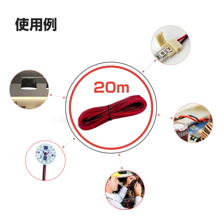 電子工作用 ケーブル 2芯 AWG22 20m 電線 コード はんだ付け 配線に最適 延長ケーブル LEDテープライト モジュール