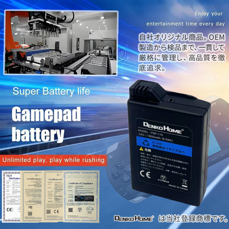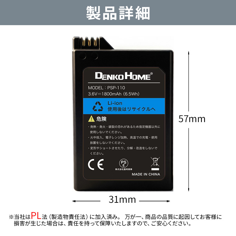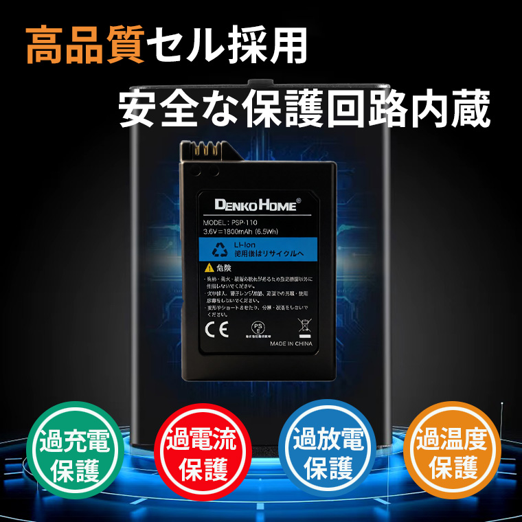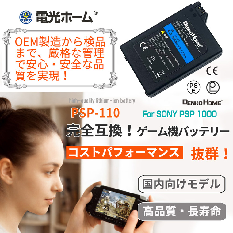 型番PSP-110に対応し、3.6V・1800mAhの容量で安定した電力供給を実現します。