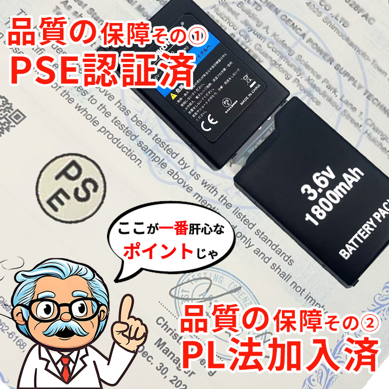 SONY PSP-1000用 互換バッテリー PSP-110 PSP-280 3.6V 1800mAh PSE認証済み 充電バッテリー SONY 互換電池 交換 充電池