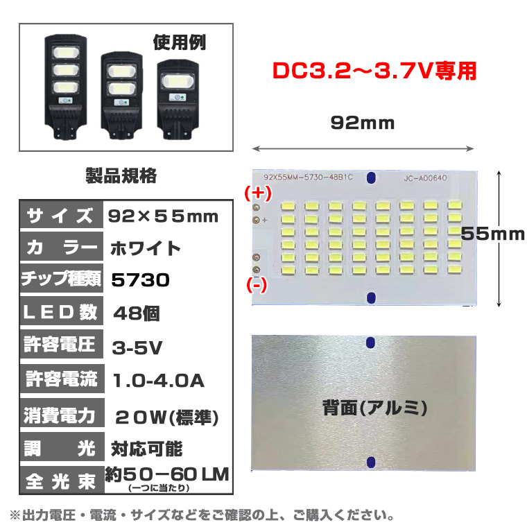 LEDモジュール 5730チップ 48LED 3V対応 長方形 高輝度 DC3.2-3.7V アルミ基板 白色 92×55mm LEDハイパワー 調光対応 LEDランプ 照明 修理 交換用 DIY