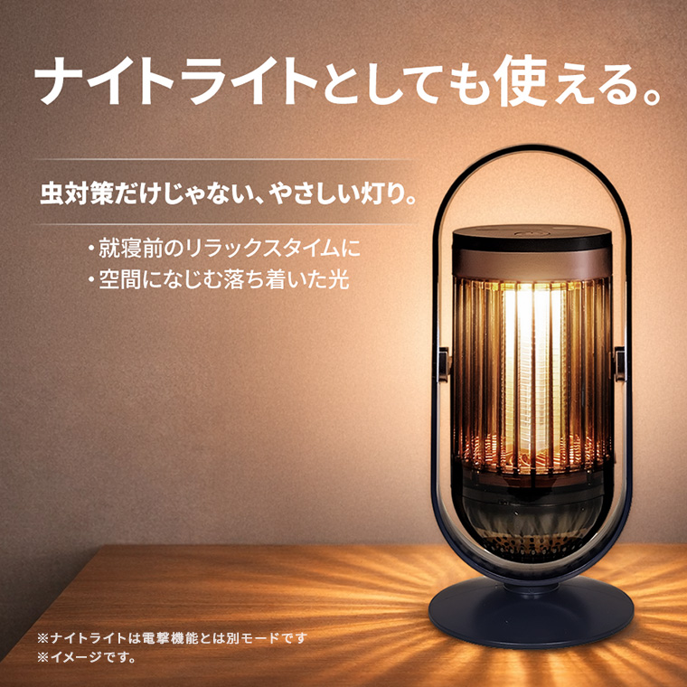 - ナイトライトとしても使える。やさしい光で空間を照らす、間接照明・インテリアライトとしても活躍。※ナイトライトは電撃機能とは別モードです