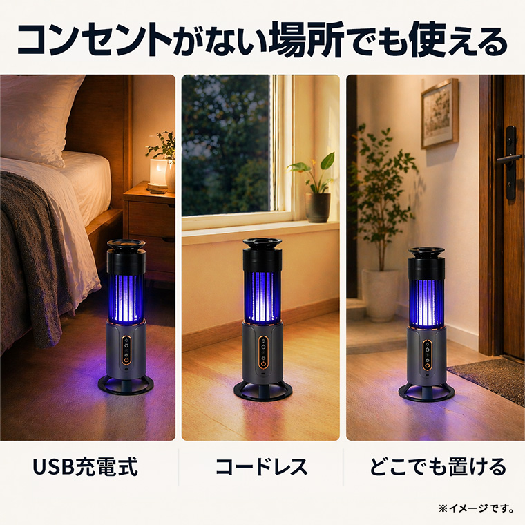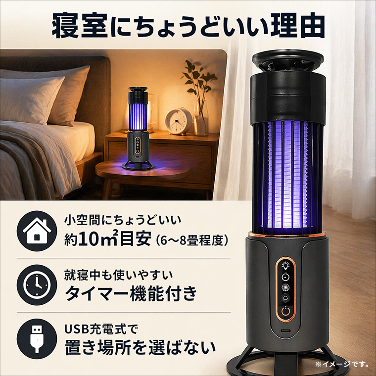 電撃殺虫機 室内用 充電式 USB コードレス 寝室用 ナイトライト タイマー付き 蚊取り 虫対策 小型 コンパクト ベッドサイド 静か 家庭用