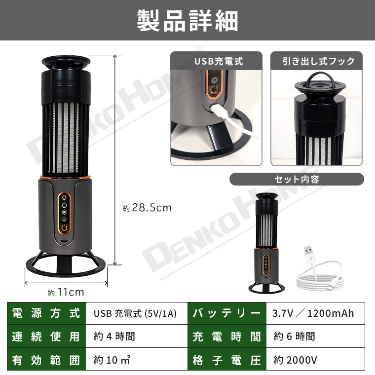 | 搭載機能 | 電撃殺虫・LED照明・タイマー機能 |