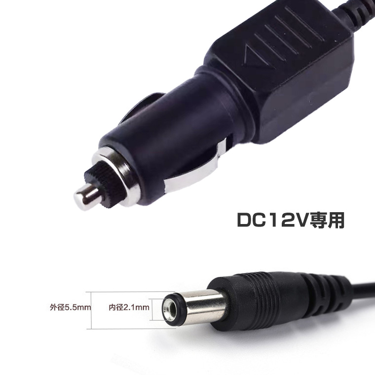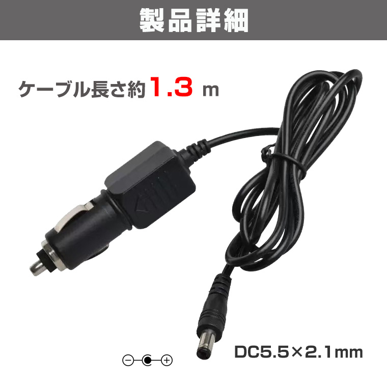 シガーソケット対応 DCケーブル 長さ1.3m DC外径5.5mm 内径2.1mm