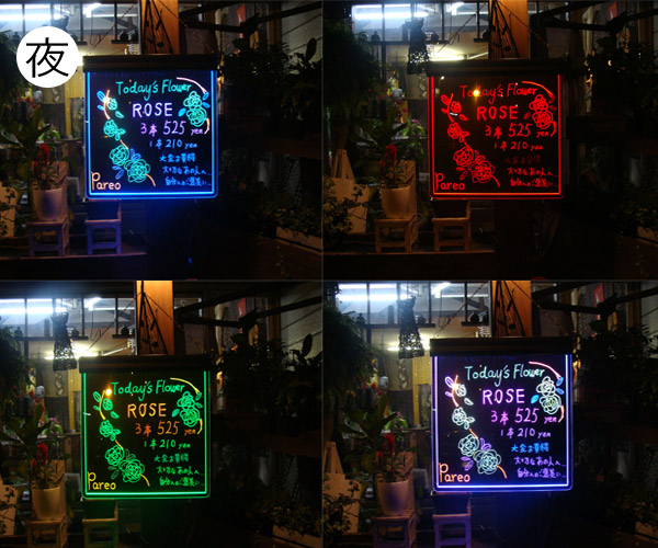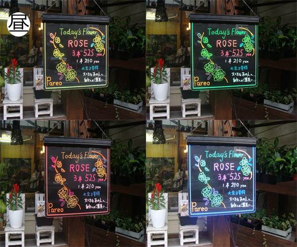 | 商品内容 | 看板、受信機、リモコン、クロス、吊り下げ用チェーン、蛍光ペン1本 |