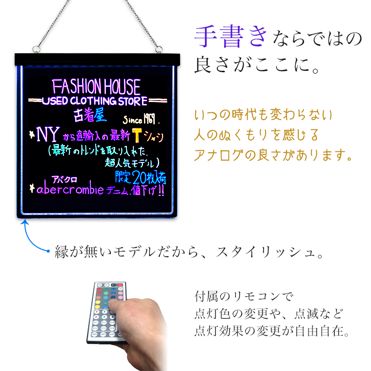 光る LED看板 ブラックボード フレームレス 縁なし 手書き 430×430mm