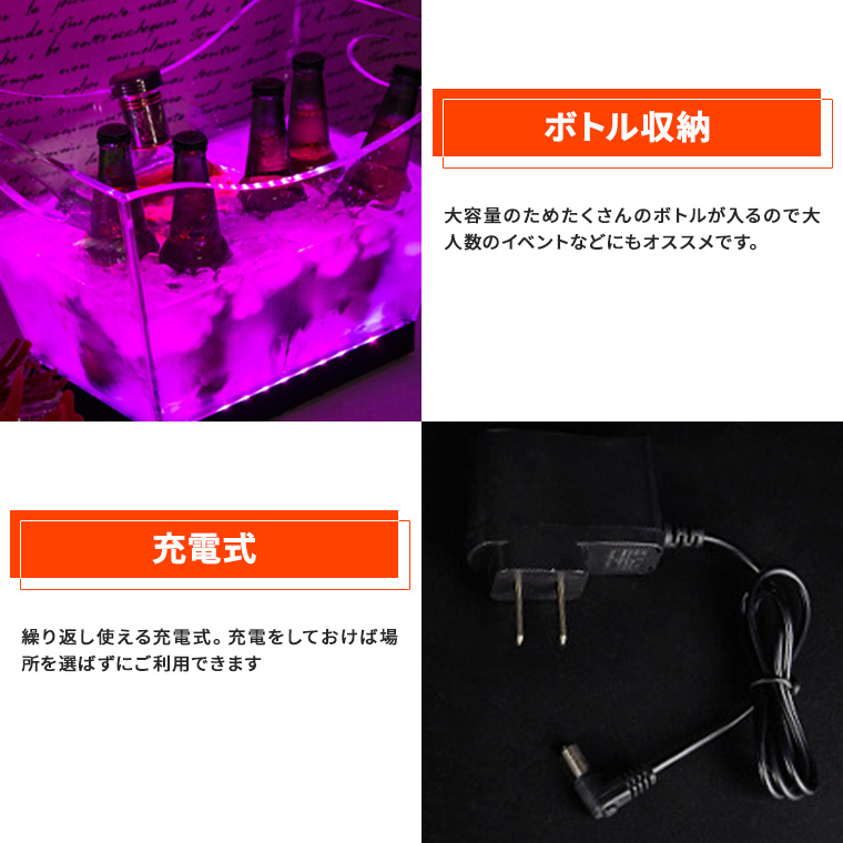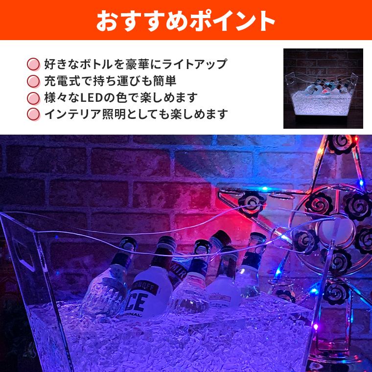 光る ワインクーラー 大型 舟形 マルチカラー 充電式 屋内用 演出 LED パーティ イベント バーアイテム お酒 グッズ カラオケ 店舗 お洒落 クラブ キャバクラ ガールズバー 結婚式 二次会 BAR ホストクラブ アイスペール