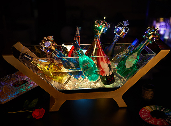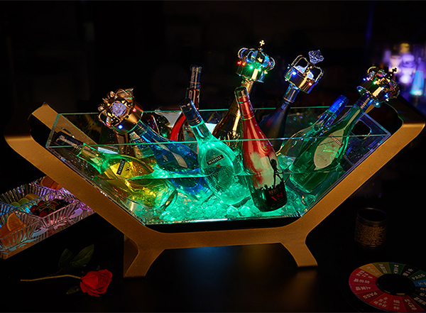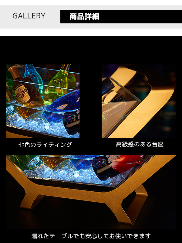 光るワインクーラー SP-14 ビッグサイズ 舟形 黄金の台座付き マルチカラー点灯 バッテリ駆動