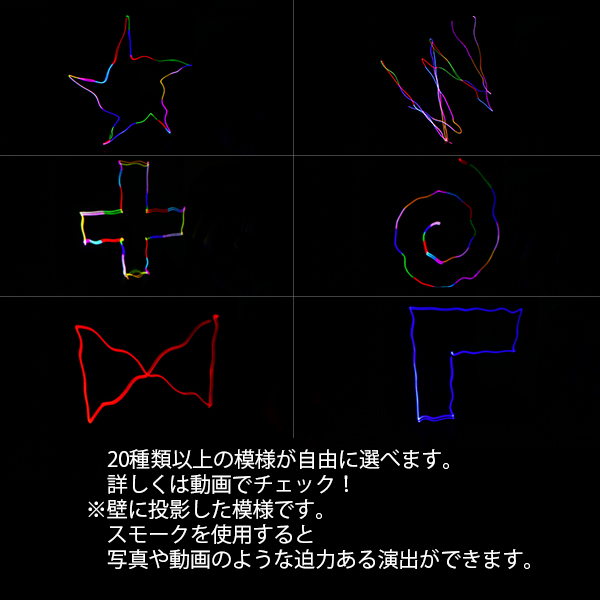 - 当社発売したスモークマシンと一緒に使用すると、光のラインを立体的に魅せる効果的な演出も可能になります。