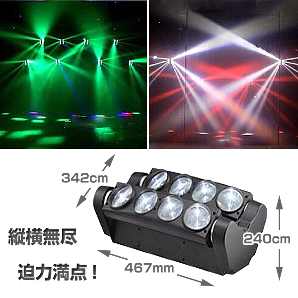 高輝度8*8W 4-in-1 LED(RGBW)使用、単独使用可能。