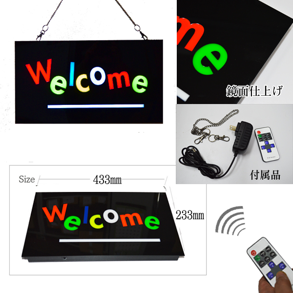 光る看板 樹脂流し込みモデル 「Welcome」 高さ23.3cm×幅43.3cm