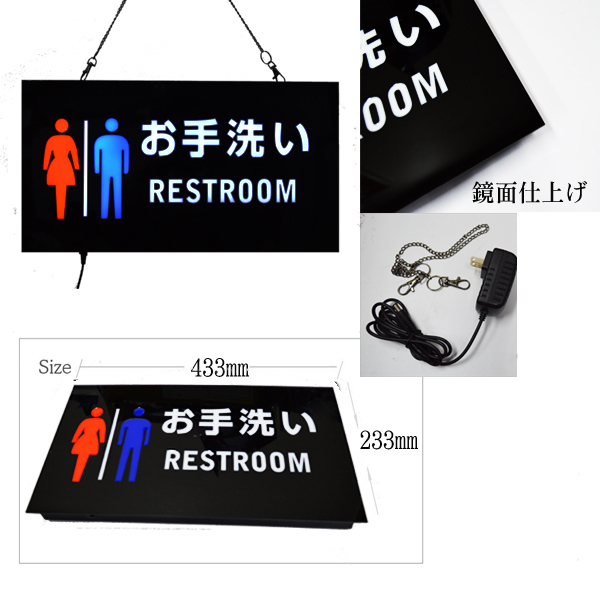 光る看板 樹脂流し込みモデル 「お手洗い」 高さ23.3cm×幅43.3cm