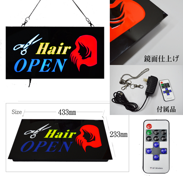 光る看板 樹脂流し込みモデル 「Hair OPEN」 高さ23.3cm×幅43.3cm